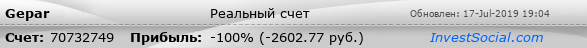 Текущие показатели торгового счета 70732749 трейдера Gepar