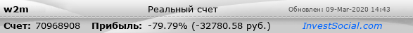 Текущие показатели торгового счета 70968908 трейдера w2m
