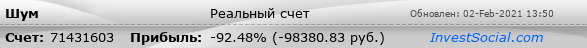 Текущие показатели торгового счета 71431603 трейдера Шум
