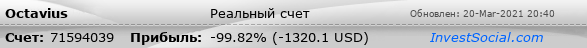 Текущие показатели торгового счета 71594039 трейдера Octavius