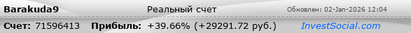 Текущие показатели торгового счета 71596413 трейдера Barakuda9
