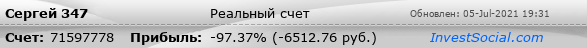 Текущие показатели торгового счета 71597778 трейдера Сергей 347