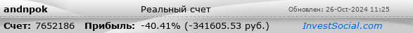 Текущие показатели торгового счета 7652186 трейдера andnpok