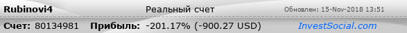 Текущие показатели торгового счета 80134981 трейдера Rubinovi4
