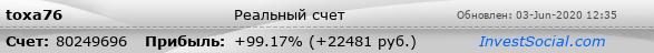 Текущие показатели торгового счета 80249696 трейдера toxa76