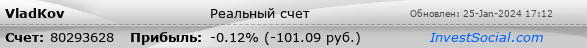 Текущие показатели торгового счета 80293628 трейдера VladKov