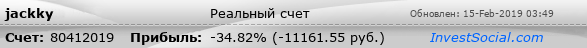 Текущие показатели торгового счета 80412019 трейдера jackky