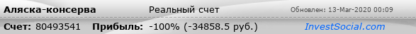 Текущие показатели торгового счета 80493541 трейдера Аляска-консерва