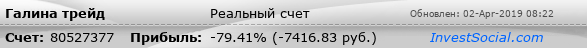 Текущие показатели торгового счета 80527377 трейдера Галина трейд