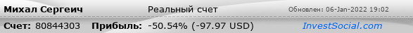Текущие показатели торгового счета 80844303 трейдера Михал Сергеич